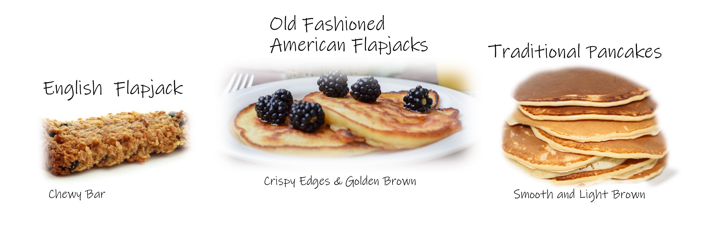 What makes these flapjacks and not pancakes? They are basically the same thing. However, the term "flapjacks" is generally from years past. Our recipe is based on a sweet and buttery, fried cake indicative of how pancakes were cooked in the south years ago.